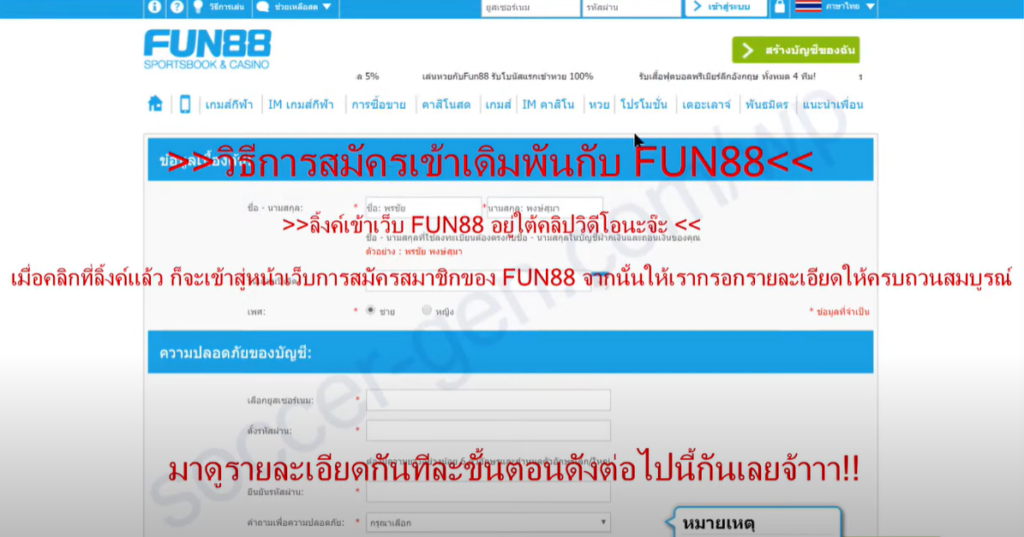 ขั้นตอนที่ 2: เตรียมข้อมูลการลงทะเบียน Fun88